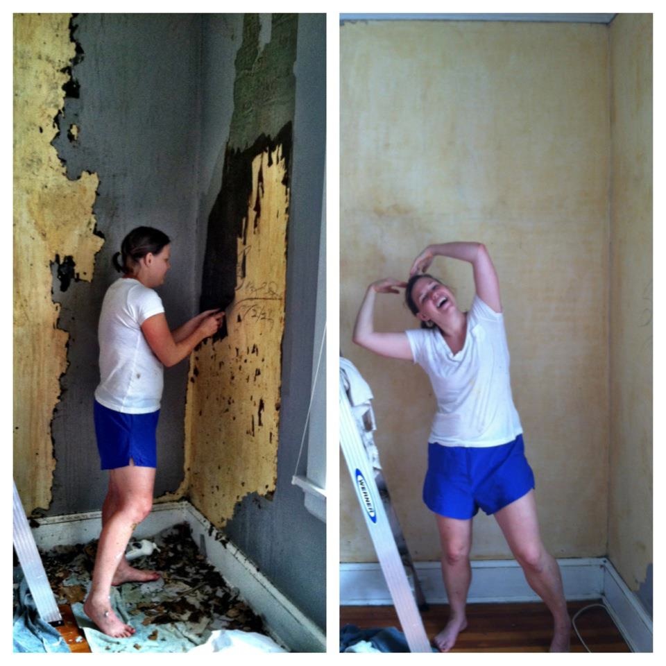 Man, taking down wall paper is HARD work! I helped my mom scrape sone off when she moved into